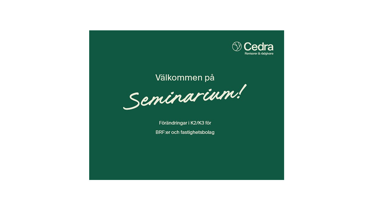 Seminarie med Cedra: Redovisningsregelverket K3 blir obligatoriskt