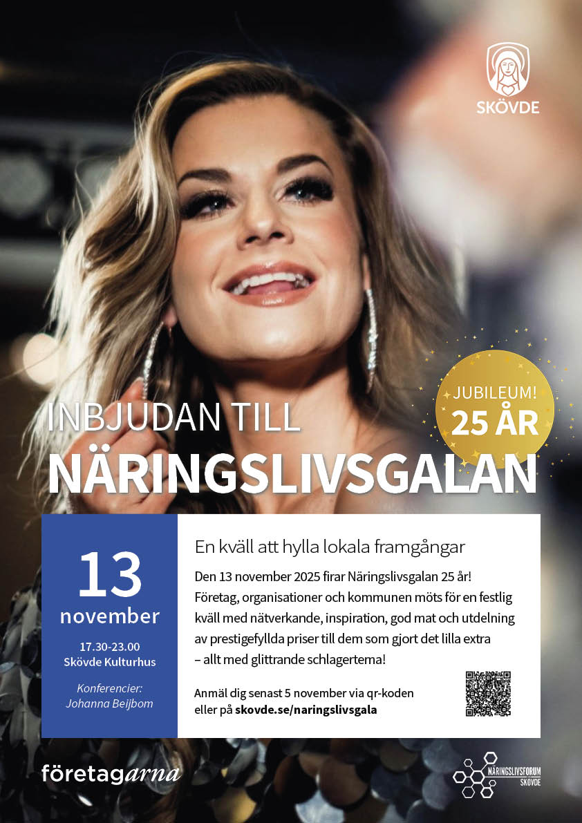 Den 13 november hyllar vi näringslivet tillsammans. Då är det dags för den 25e upplagan Näringslivsgalan i Skövde.